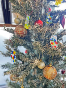 【かごしまエリア】手作りのオーナメントを飾りました 2025.12.11 イオンモール鹿児島の中にある、FARMERS TABLE HANANOKI 店内のクリスマスツリーに、花の木カノンの利用者さんが手作りしたオーナメントを飾りました。 毎年飾っているオーナメント。 今回はペットボトルキャップなどの廃プラスチックを使用して作りました。 お立ち寄りの際には利用者さんの思いがつまったオーナメントもどうぞお楽しみください! 一覧へ戻る